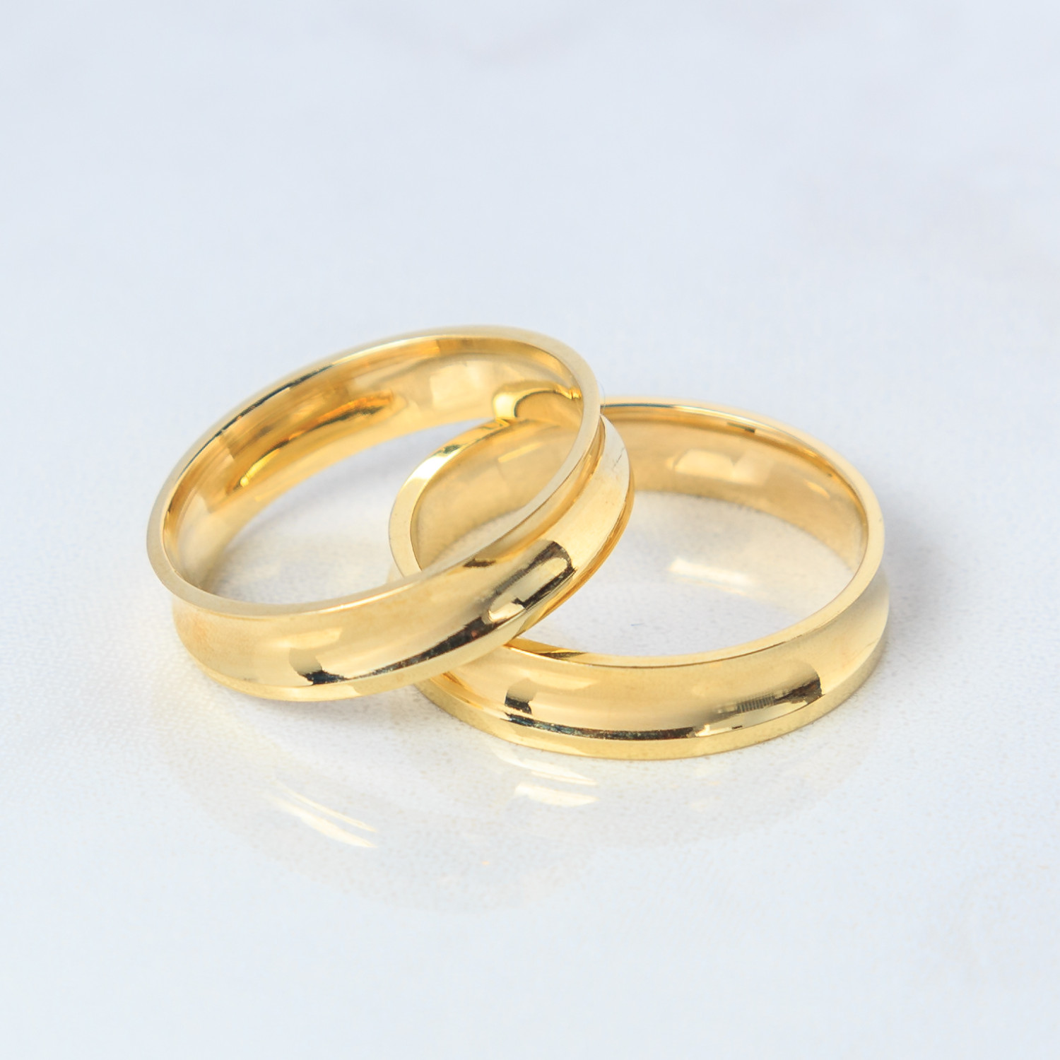 Aliança em ouro amarelo 18 kt, côncava com friso lateral polido