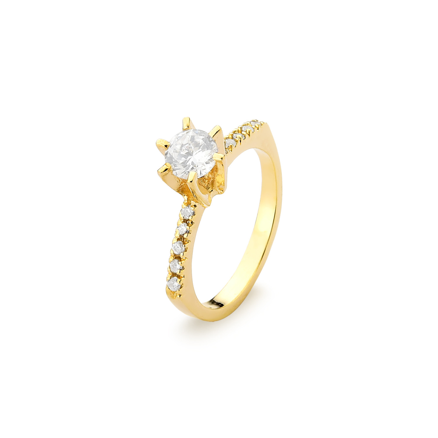 Solitário em ouro amarelo 18 kt com 10 diamantes e 1 central de 0,45 pontos