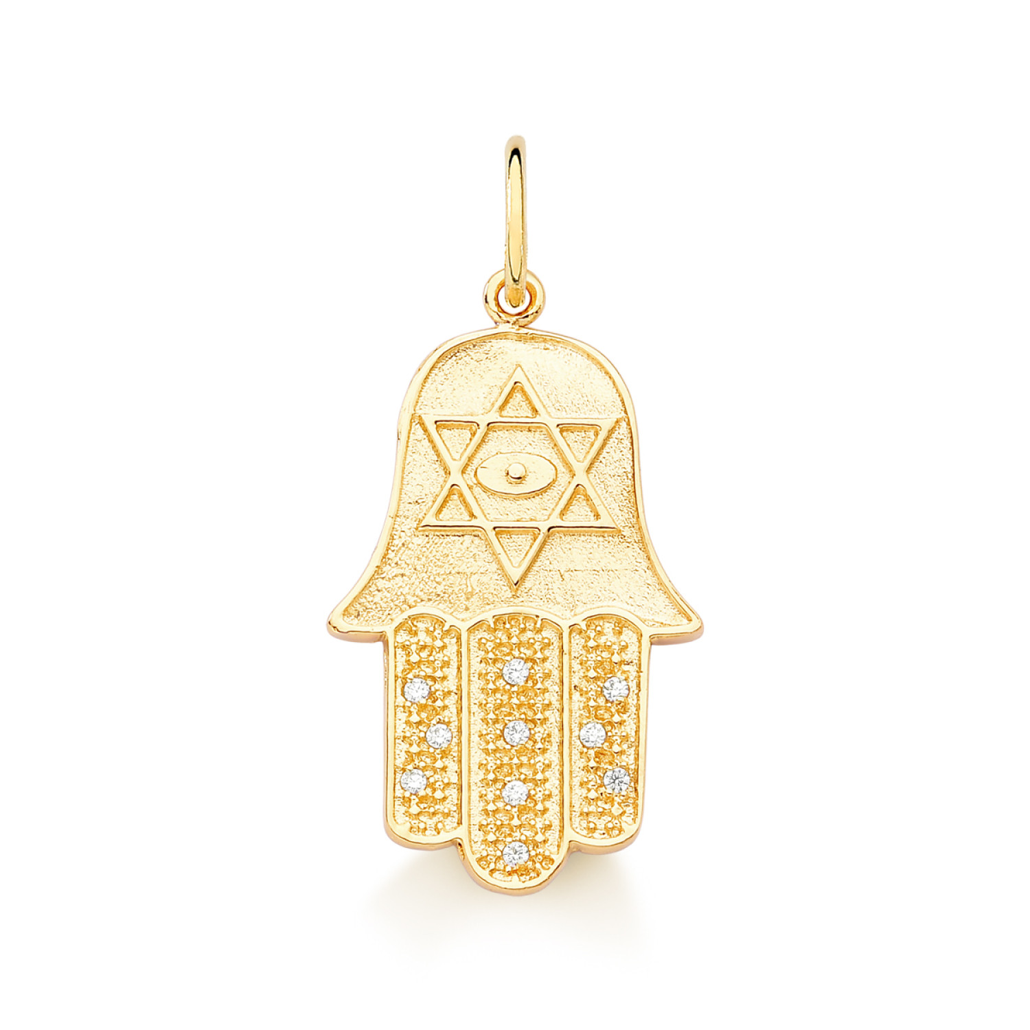 Pingente Mão de Fátima em ouro 18 kt com 10 diamantes com 3,5 cm