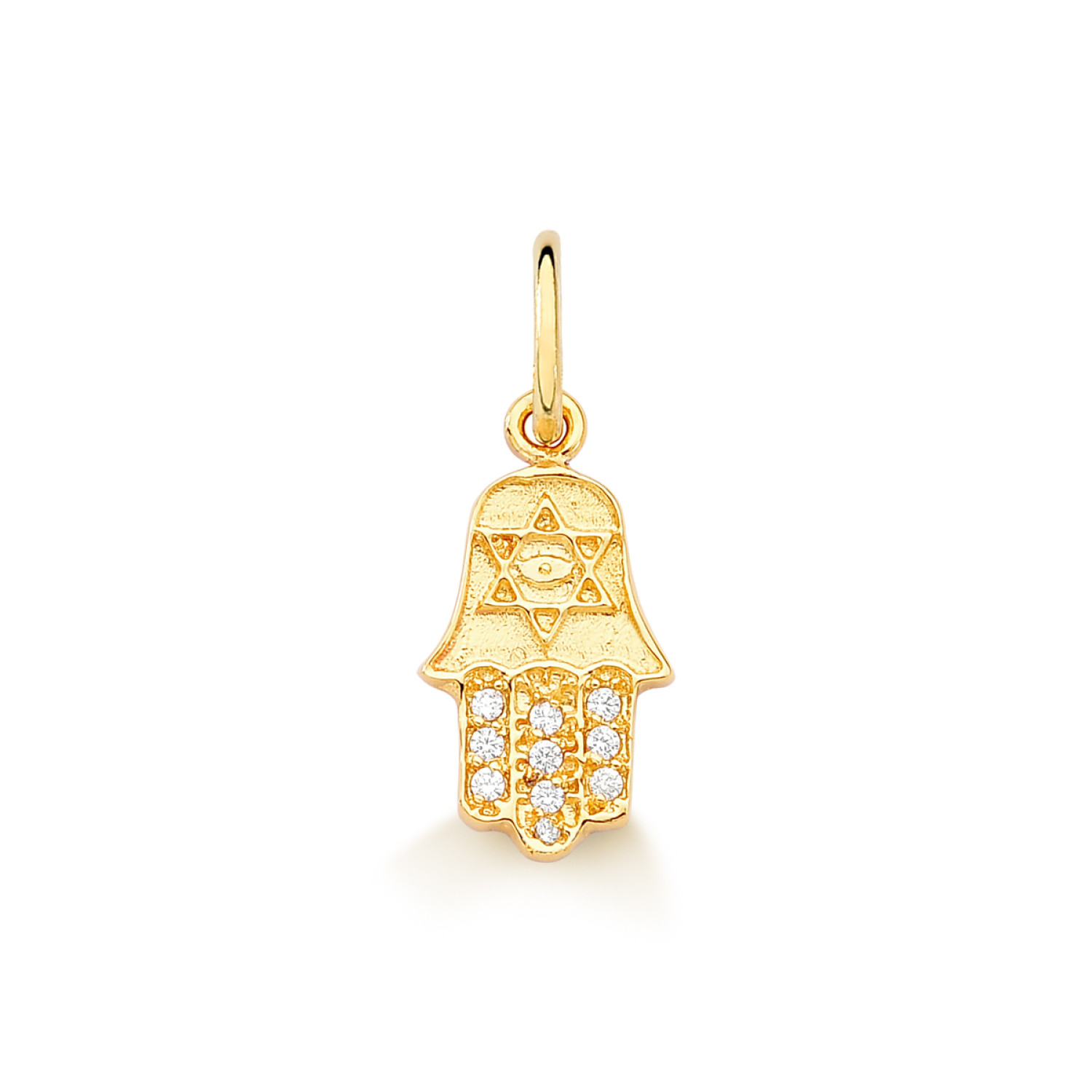 Pingente Mão de fátima em ouro amarelo 18 kt com 9 diamantes